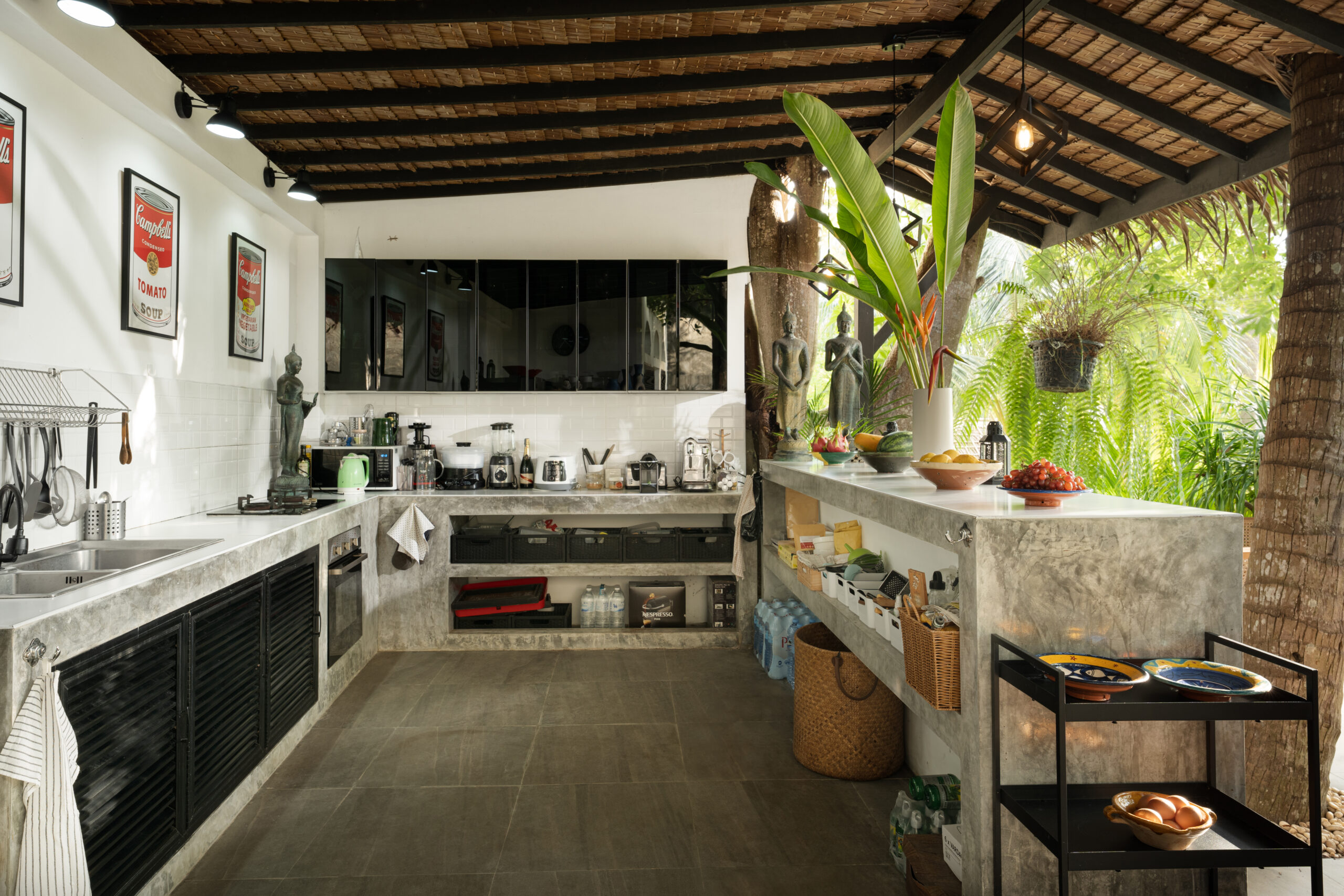 The kitchen, features a 2 burners gas stove, an oven, a microwave, a food mixer, a toaster, a water kettle, a rice cooker, an ice cube maker machine (safe to consume), a Nespresso coffee machine and a large terrace with outside dinning area.